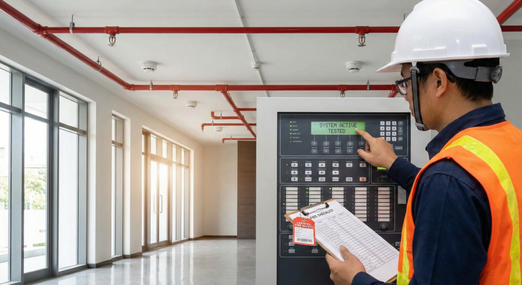 Rigorous testing and maintenance of fire alarm panels, sprinkler networks, pump rooms, and emergency lighting systems.