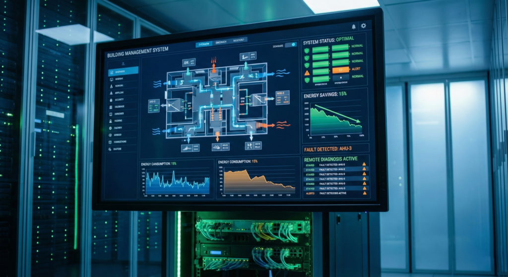 Advanced monitoring and optimization of automated building controls. We manage the “brain” of your facility to ensure synchronized operation of mechanical and electrical systems.